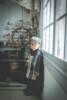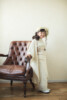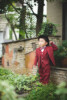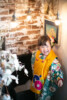 ツイード素材が珍しいお着物。小物のアクセントカラーでおしゃれに。